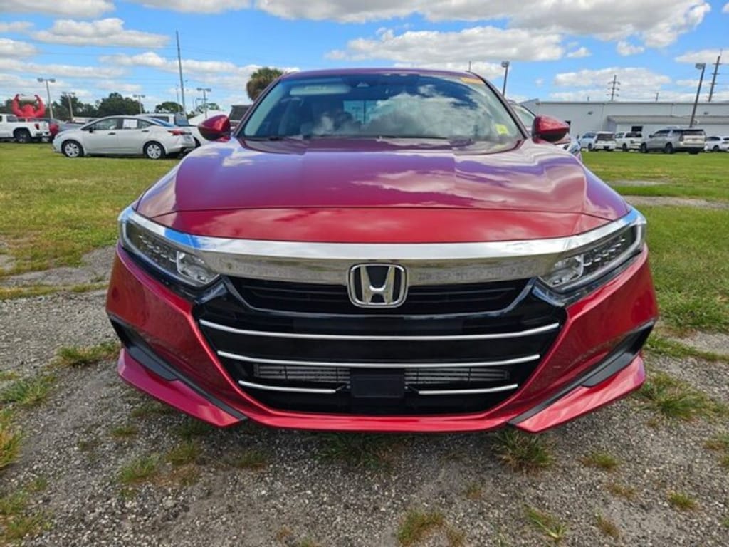 It has only one previous owner, verified by AutoCheck. The Honda Accord offers Apple CarPlay for seamless connectivity. Bluetooth technology is built into this vehicle, keeping your hands on the steering wheel and your focus on the road. This 2021 Honda Accord has auto-adjust speed for safe following. This mid-size car offers Android Auto for seamless smartphone integration. See what's behind you with the back up camera on this mid-size car. This model offers Automatic Climate Control for personalized comfort. The vehicle is front wheel drive. This 2021 Honda Accord has a 4 Cyl, 1.5L high output engine. Maintaining a stable interior temperature in this 2021 Honda Accord is easy with the climate control system. It excites both driver and bystanders with a polished red exterior with racy lines. The Electronic Stability Control will keep you on your intended path. This vehicle features cruise control for long trips. Enjoy the tried and true gasoline engine in this vehicle.
